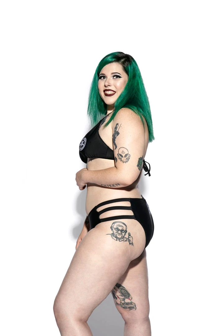 Cheeky fit bikini bottoms with Believe In Yourself logo at back. Sides feature strappy detail.