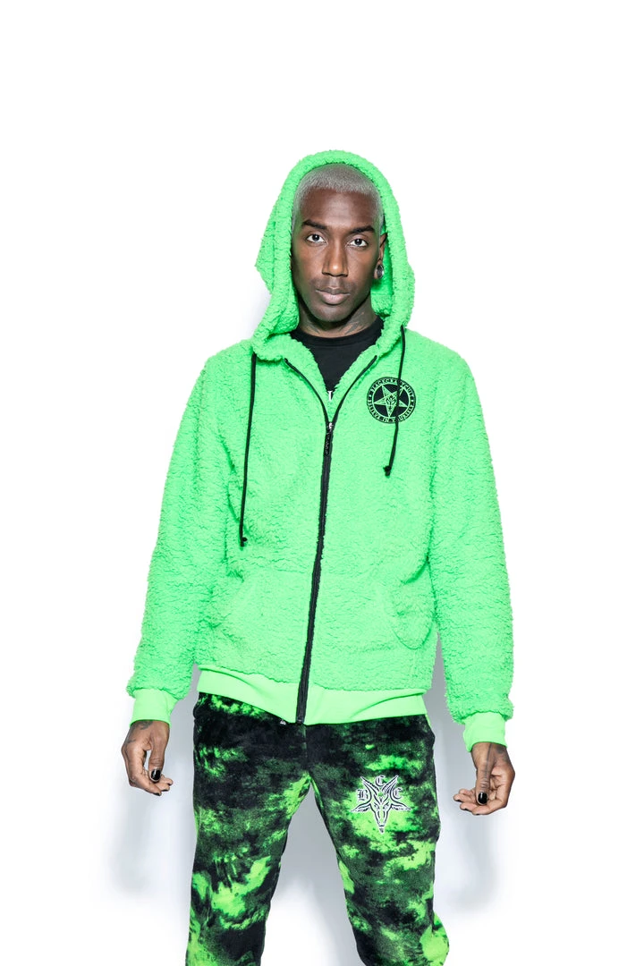 ACDC Green Baphomet – Unisex Sherpa Zip Up Hoodie Womens