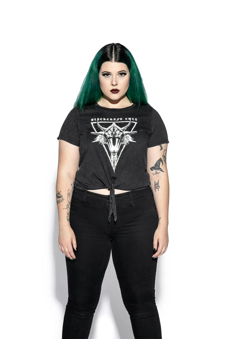 ACDC Womens Six Eyed Baphomet – Tie Front Crop Tee