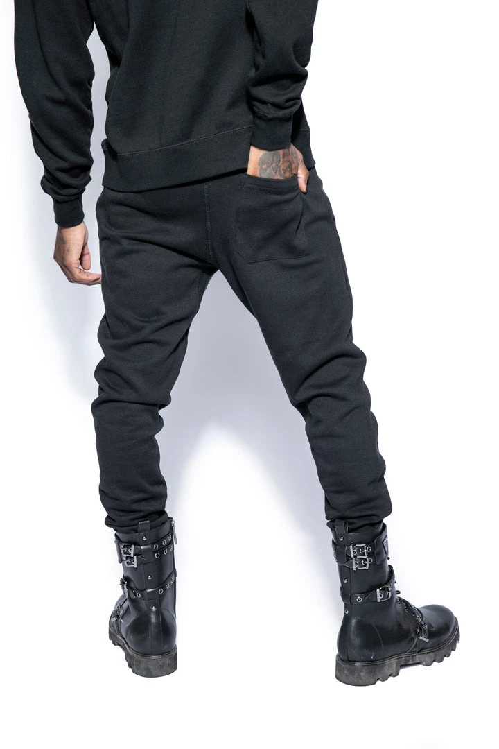 Slim fitting with tapered ankle. 80% cotton 20% polyester.