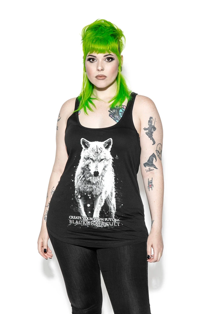 Women’s 100% Cotton Racerback Tank. New and improved fit. Please refer to: http://www.blackcraftcult.com/pages/size-charts