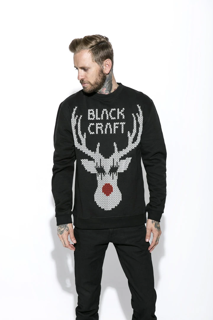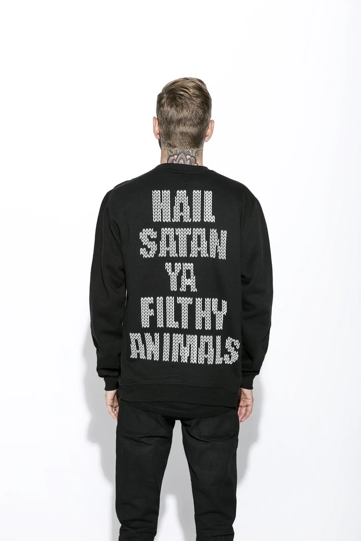 Screen printed Black Metal Rudolph on the front and “Hail satan ya filthy animals” screen printed on the back.