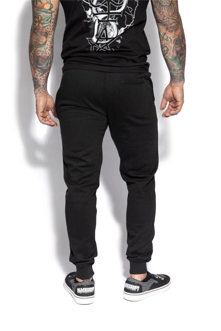 Slim fitting with tapered ankle. 80% cotton 20% polyester.