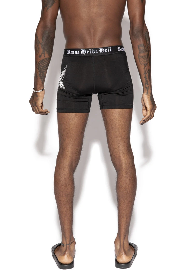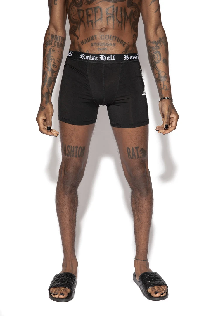 Our first collection of boxer briefs! This style features custom “Raise Hell” waistband and printed Baphomet on the side. Soft to the touch and designed to be fitted on the body with a front pouch for extra comfort.Â