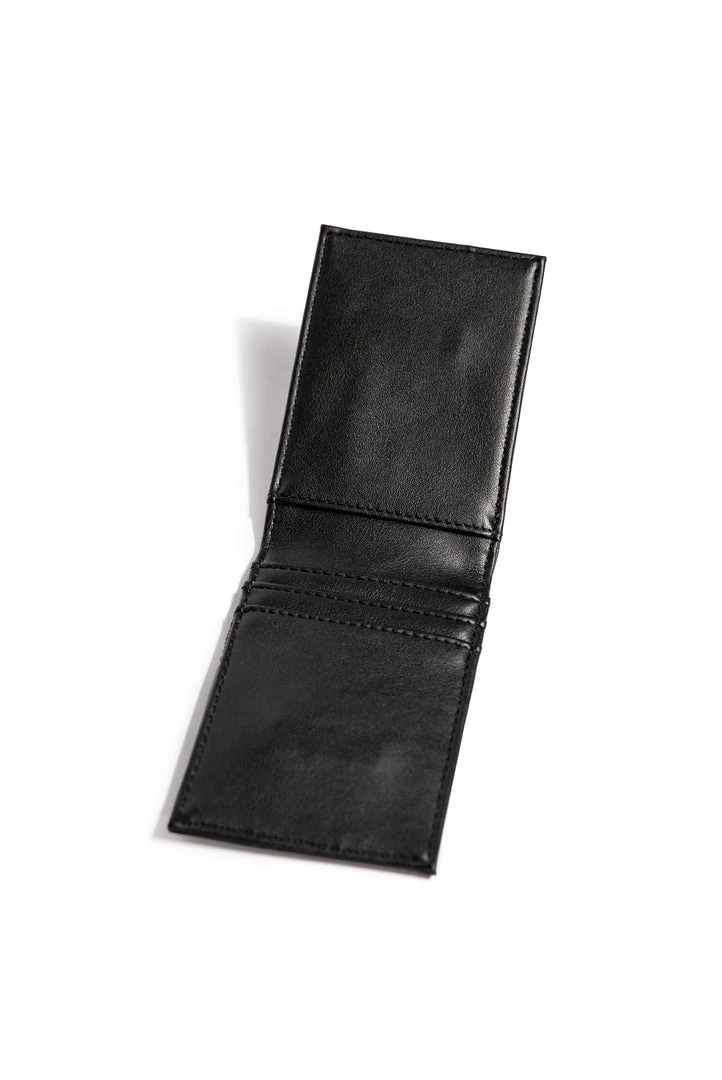 Baphomet embossed, faux leather front pocket wallet. Features 4 internal card slots/pockets and 3 external card slots/pockets and 1 external ID slot.