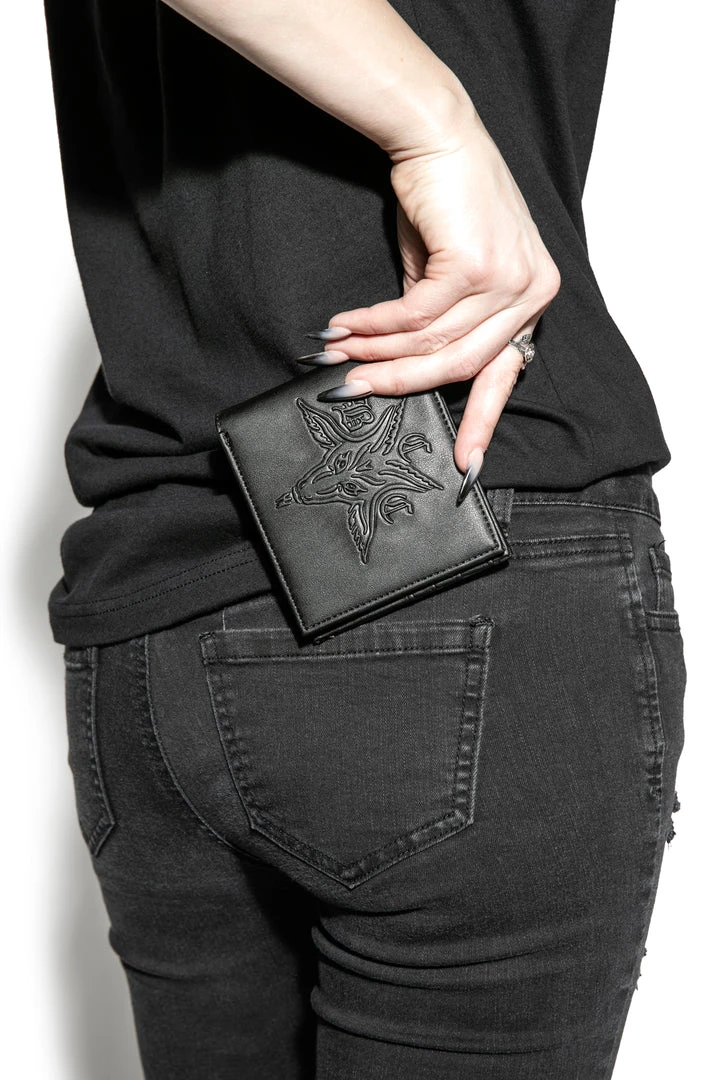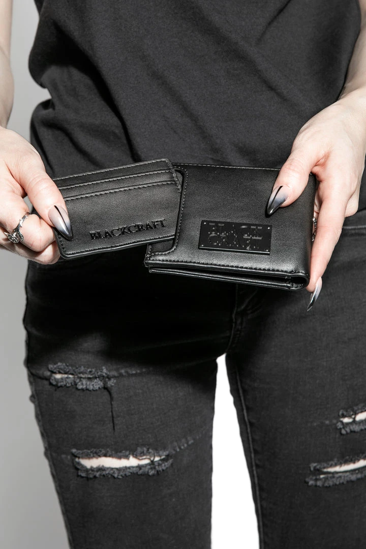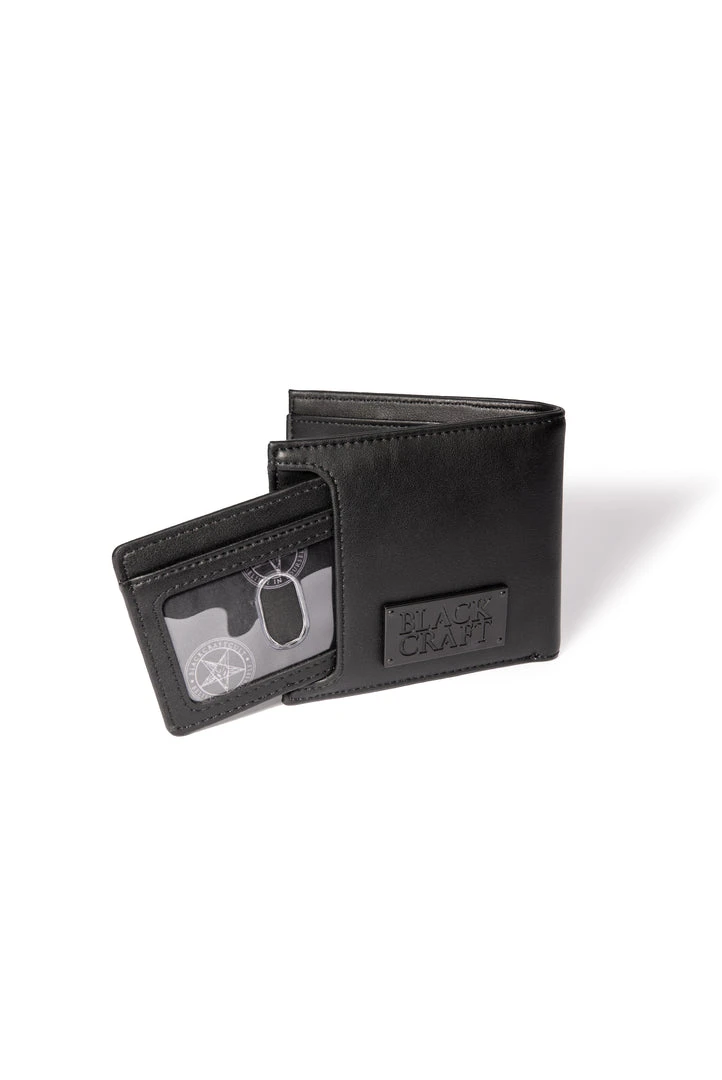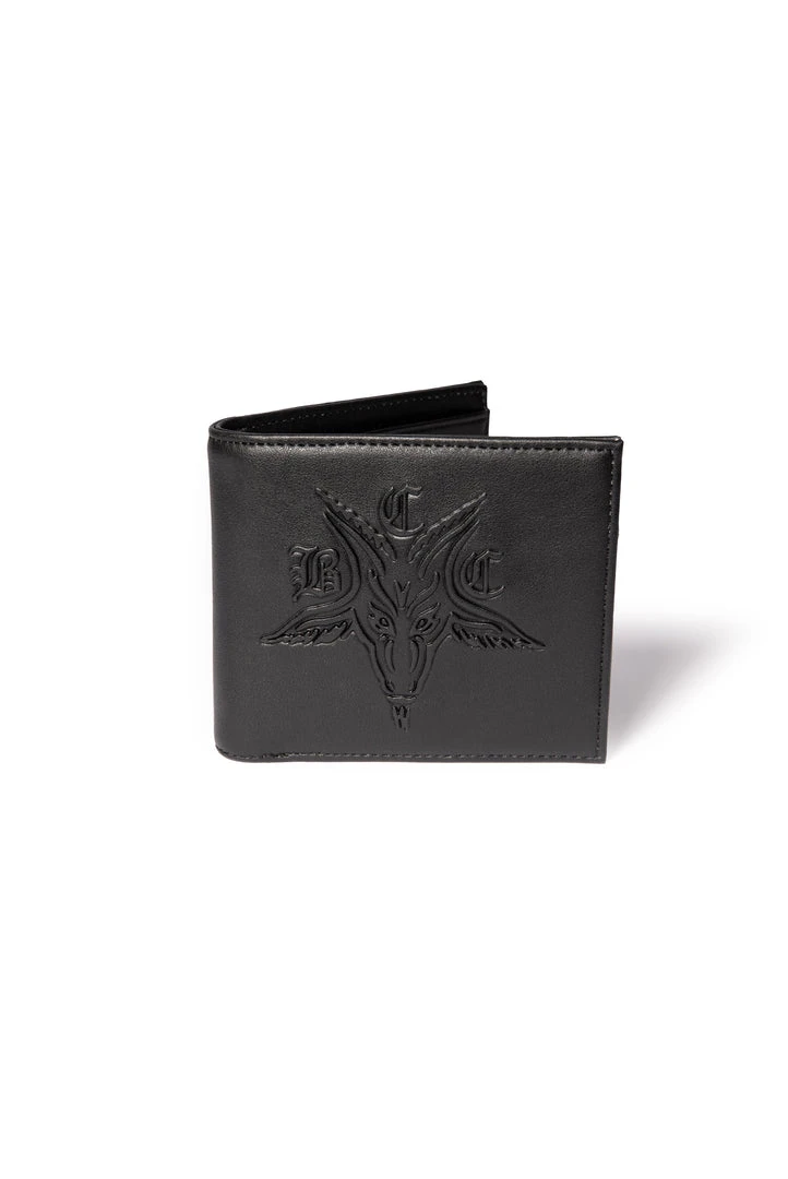 Bifold wallet with removable card case insert. Features BCC Goat embossed on the front and Blackcraft plaque hardware on the back.