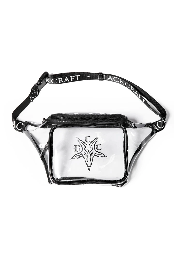 Premium heavy PVC clear material fanny pack with faux leather trim. Adjustable Blackcraft logo webbing straps with gunmetal finish Blackcraft zippers.