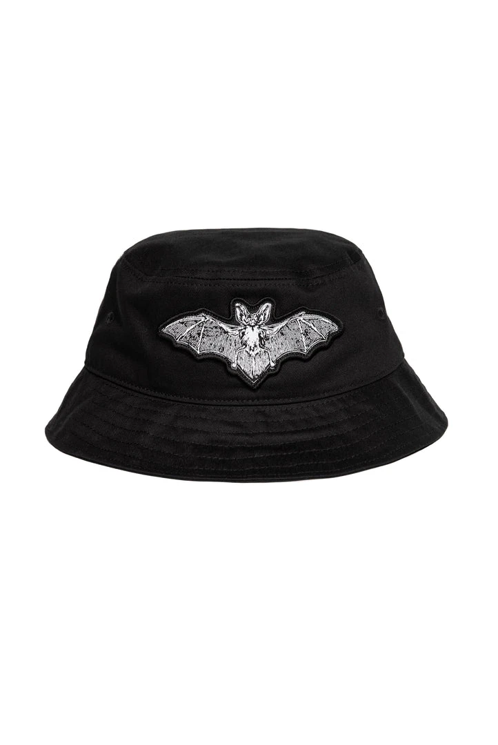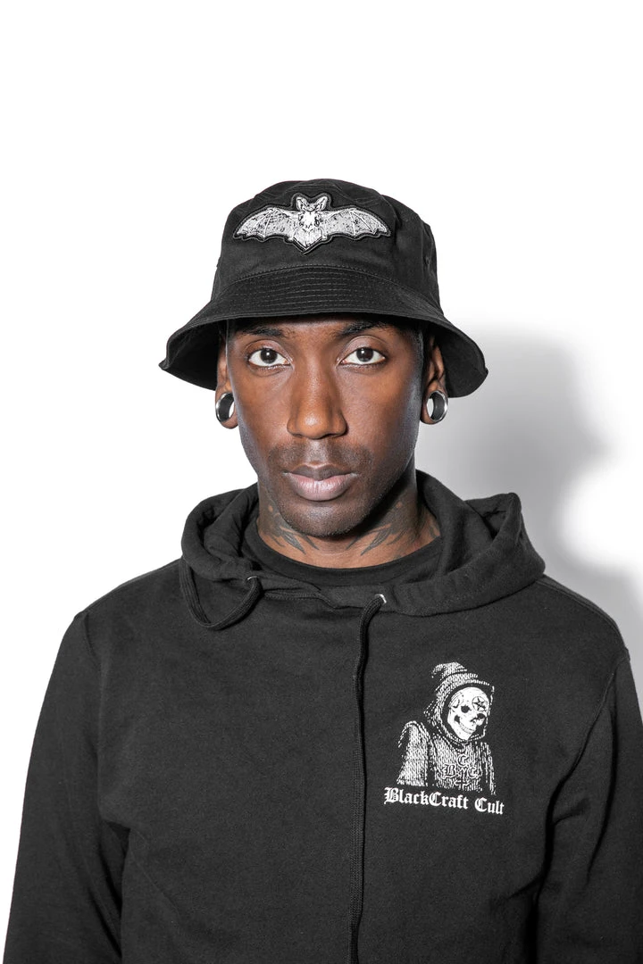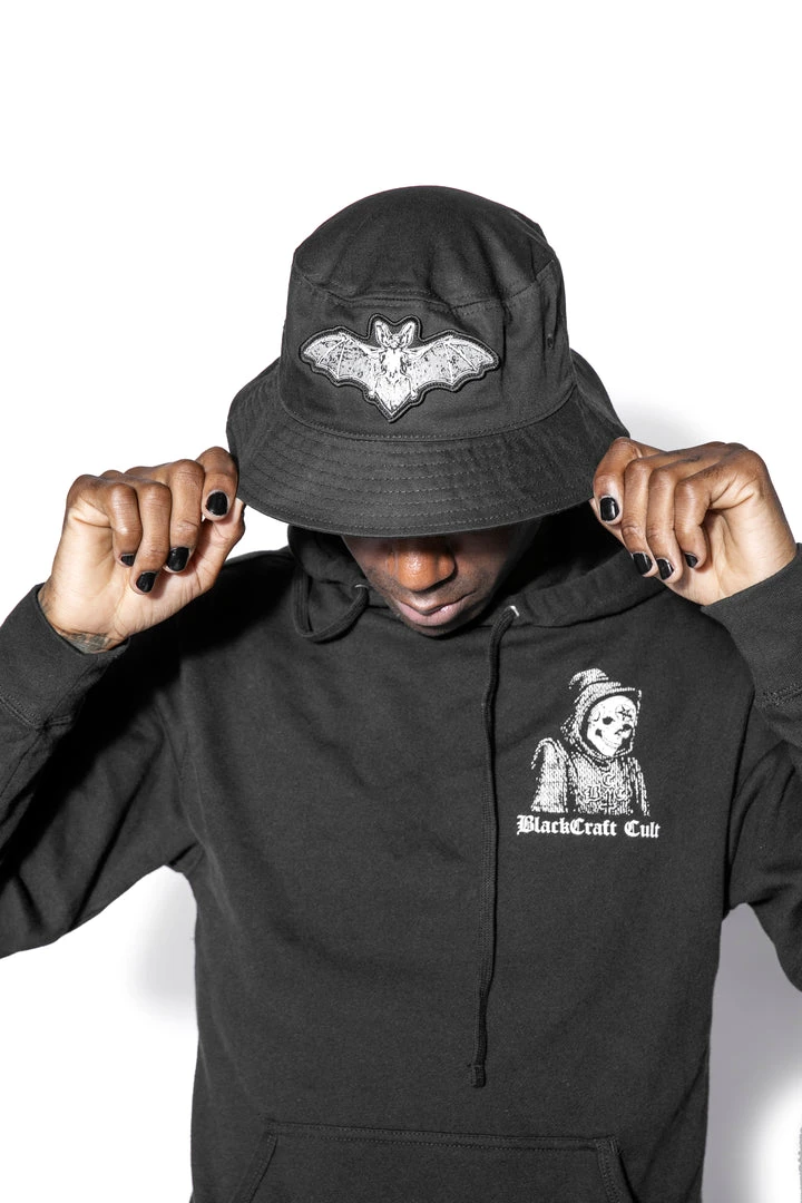 Bucket hat with Batcraft patch sewn on the front.